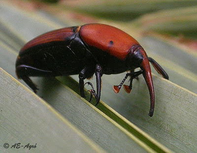 El picudo rojo (Rhynchophorus ferrugineus) es un insecto procedente del Asia tropical que desde hace cinco años hace mella en las poblaciones de palmeras de buena parte de la isla de Mallorca. Este curioso insecto se introduce en los troncos de las palmeras excavando galerias que acaban por matar a estas plantas, provocando un amarilleamiento de sus hojas y su posterior marchitación.En especial, son las palmeras datilera y canaria las especies más afectadas por este insecto, aunque los últimos estudios realizados por el Govern Balear han encontrado indicios de picudo en especies como la washingtonia o el popular “garballó”.